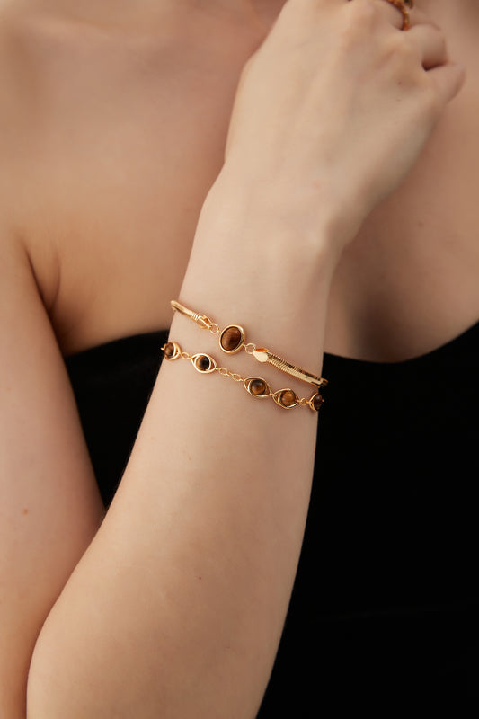 GEM GAZE TIGER EYE STERLING SILVER SNAKE CHAIN BRACELET, SINGLE MODEL