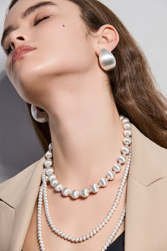 CLASSIC HANDCRAFTED 43CM PLATINUM-PLATED FINE TEXTURED NECKLACE
