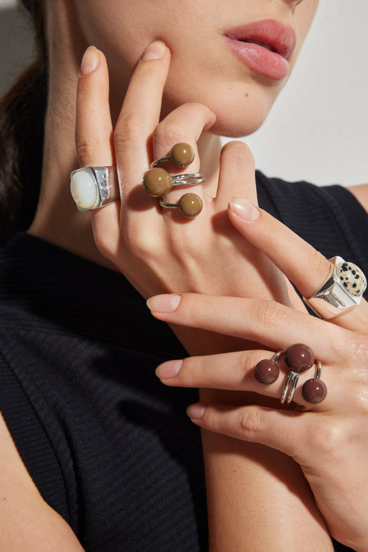 CLASSIC MERLOT THREE-BEAD ENAMEL RING