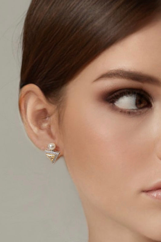 LE PERFUME YELLOW TRIANGLE STONE EARRINGS WITH PEARL